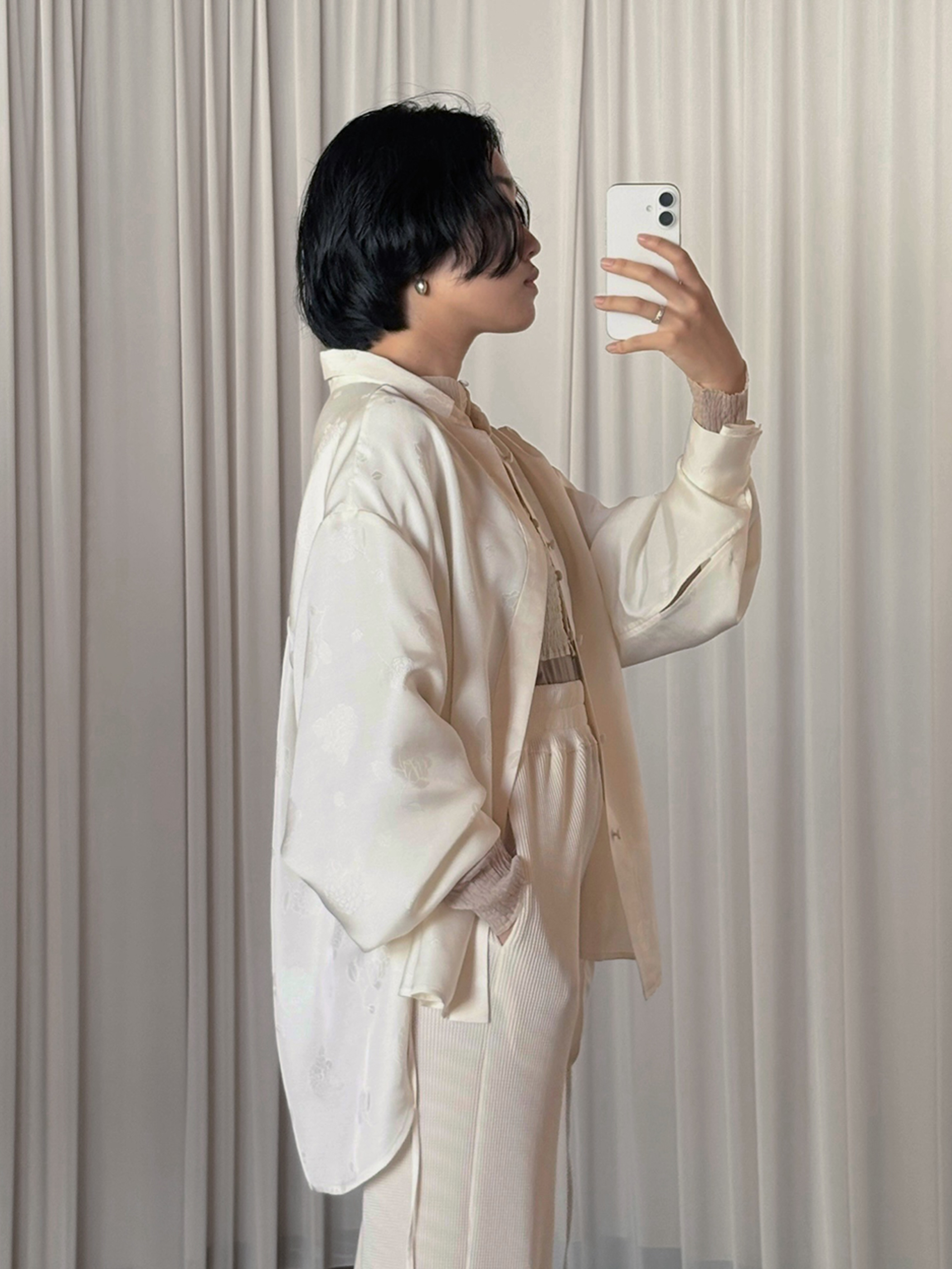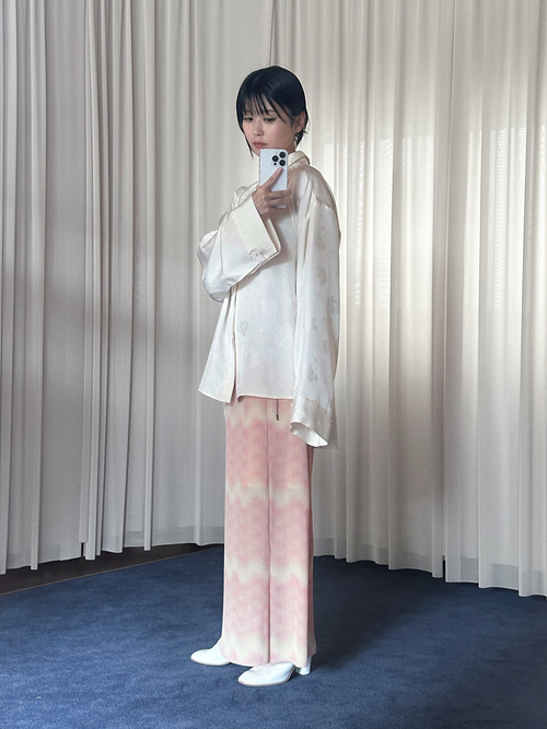 時代を感じさせる独特の質感と、年代ならではの高品質な生地感はヴィンテージならでは。今季はテーマとリンクした指紋のような柄(PINK)やシーズンのキーカラーであるレモン・グレーの5色をピックアップ。中でも花柄の ROSE はシルク100%のスペシャルな素材。メンズ・ウィメンズ共に、シャツとハーフパンツの2型を展開する。