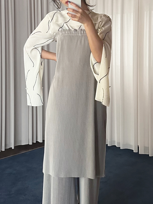 夏場から着用できる、しっとり滑らかな質感が特徴的なシーズンレスのプリーツシリーズ。