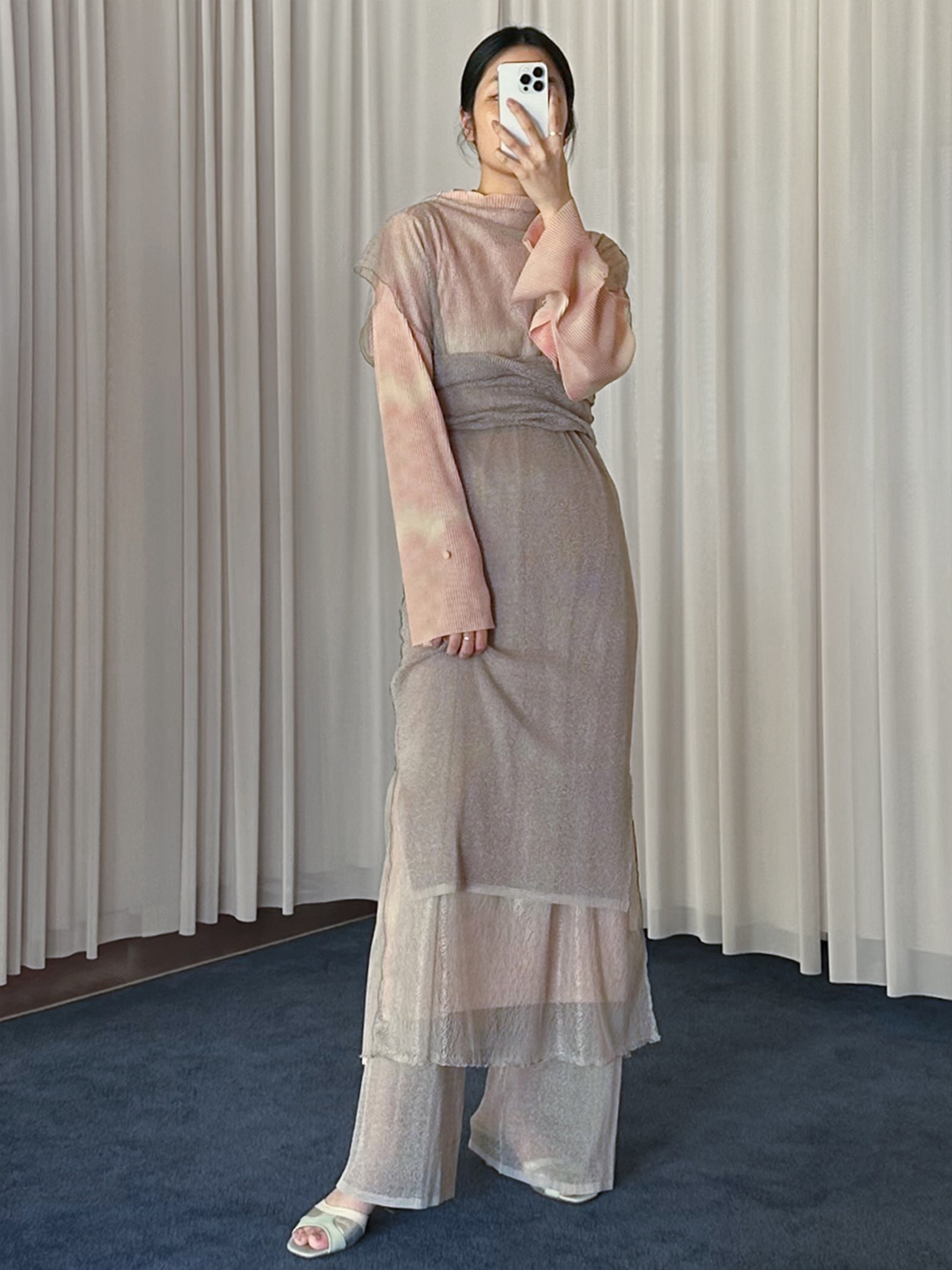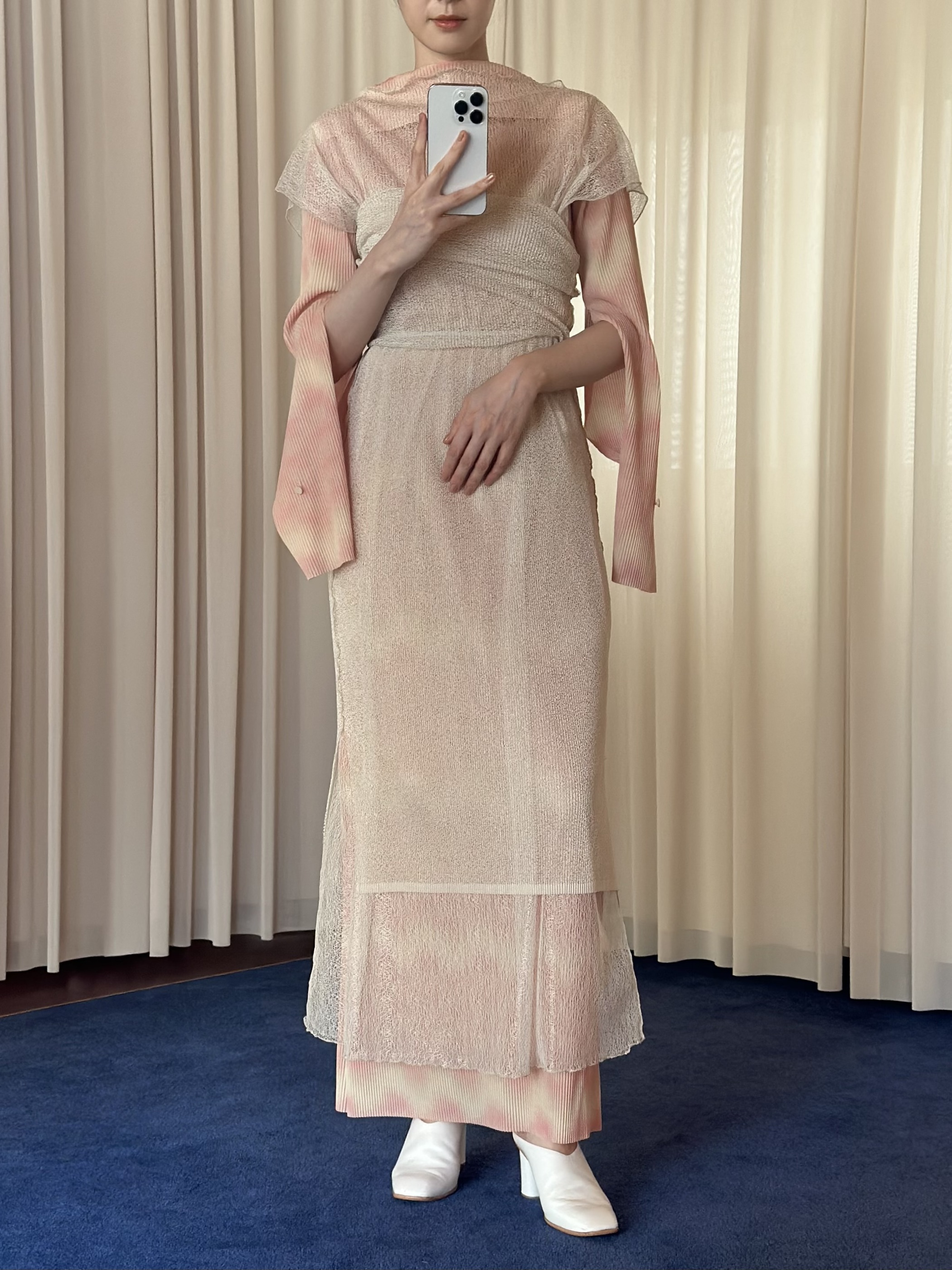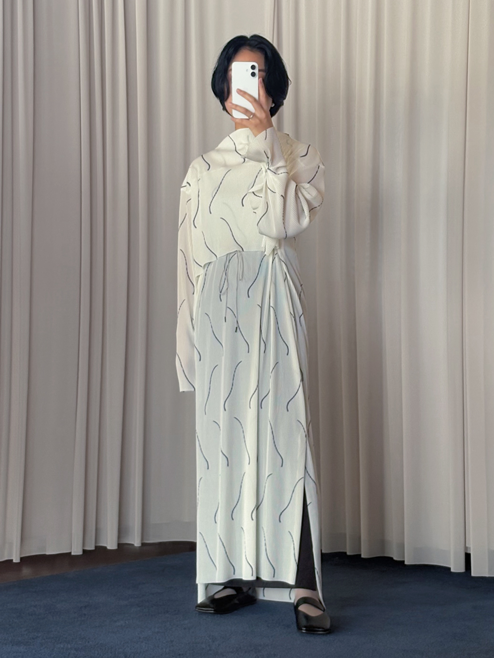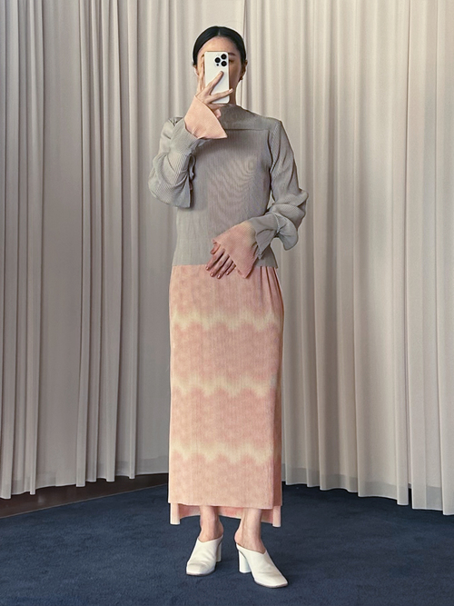 夏場から着用できる、しっとり滑らかな質感が特徴的なシーズンレスのプリーツシリーズ。