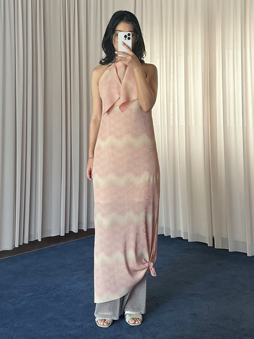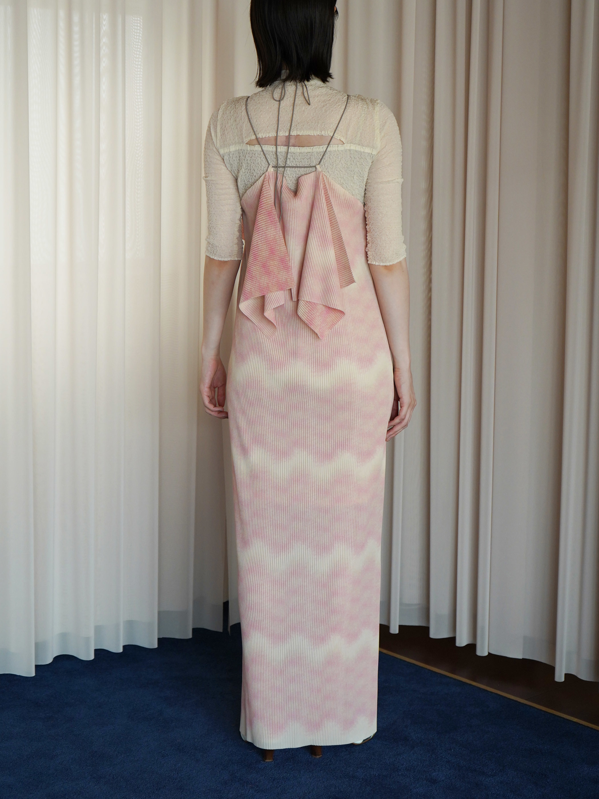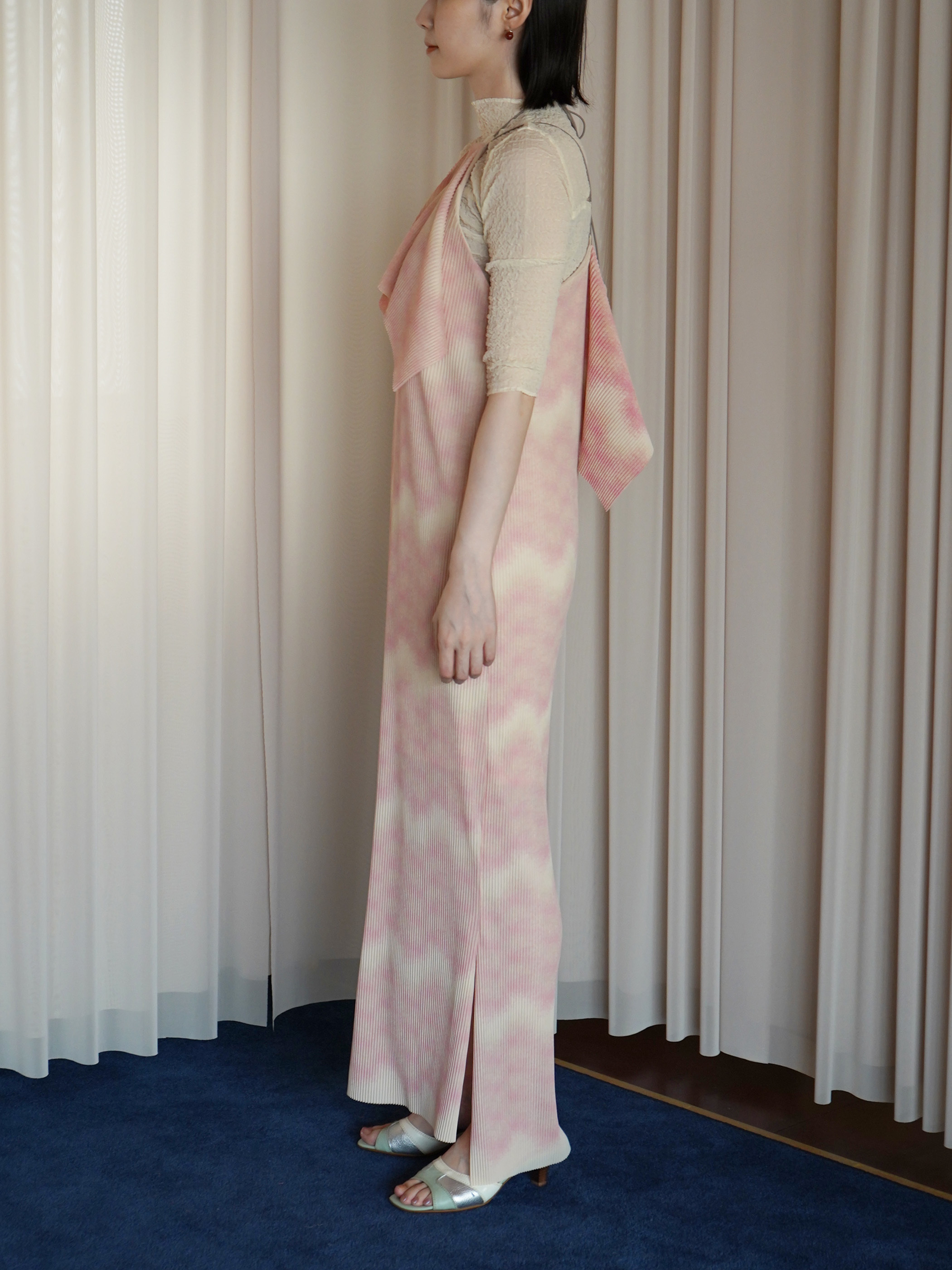 スカーフのように重なるデザインが特徴的なキャミソールドレス。