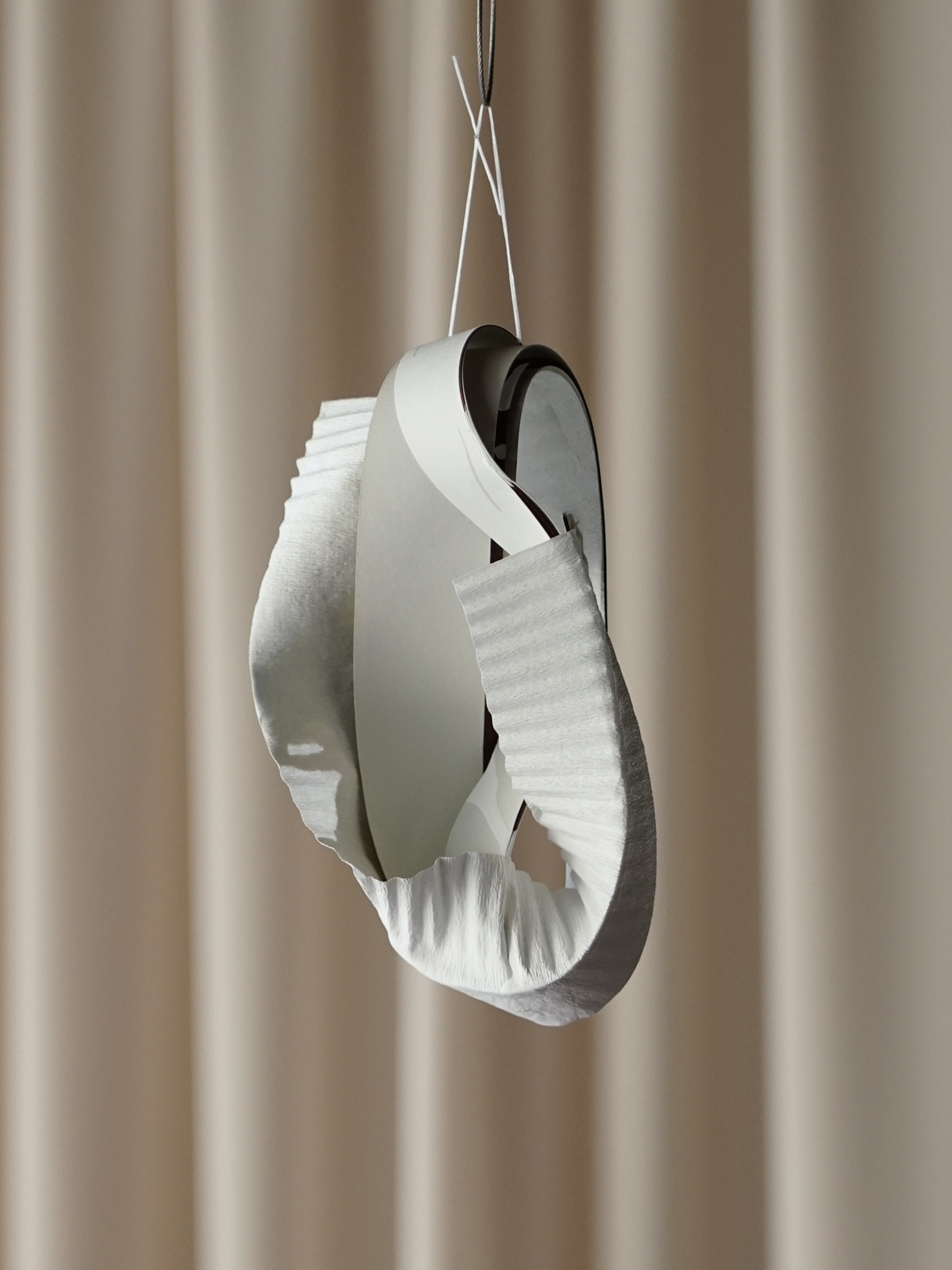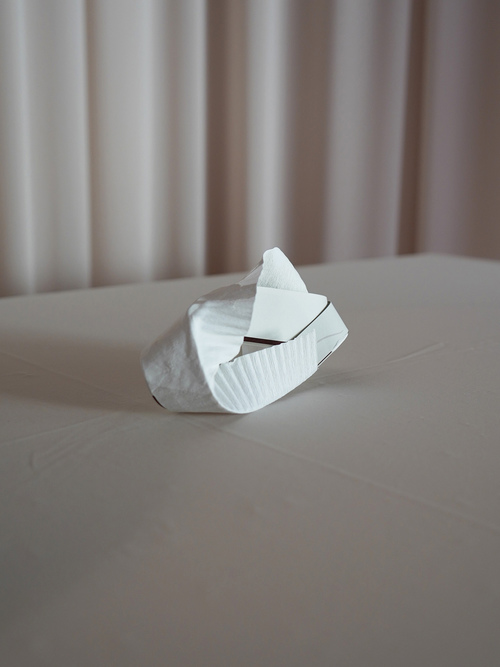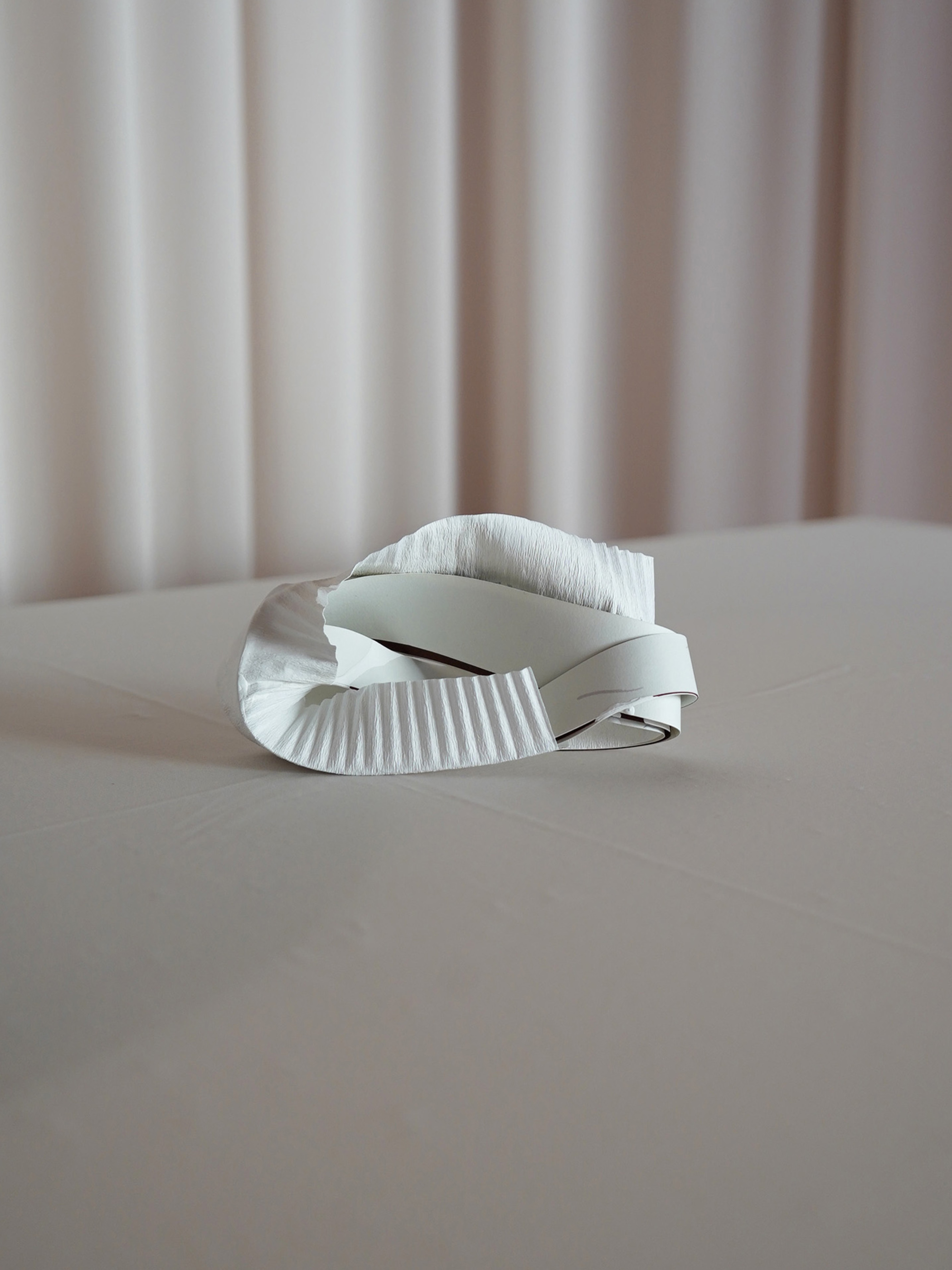 加工の際に廃棄されるプリーツ紙は作品の痕跡として吉田の手に還し、新たな作品のきっかけとしました。