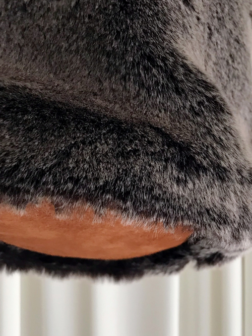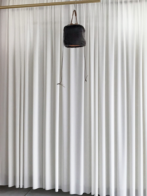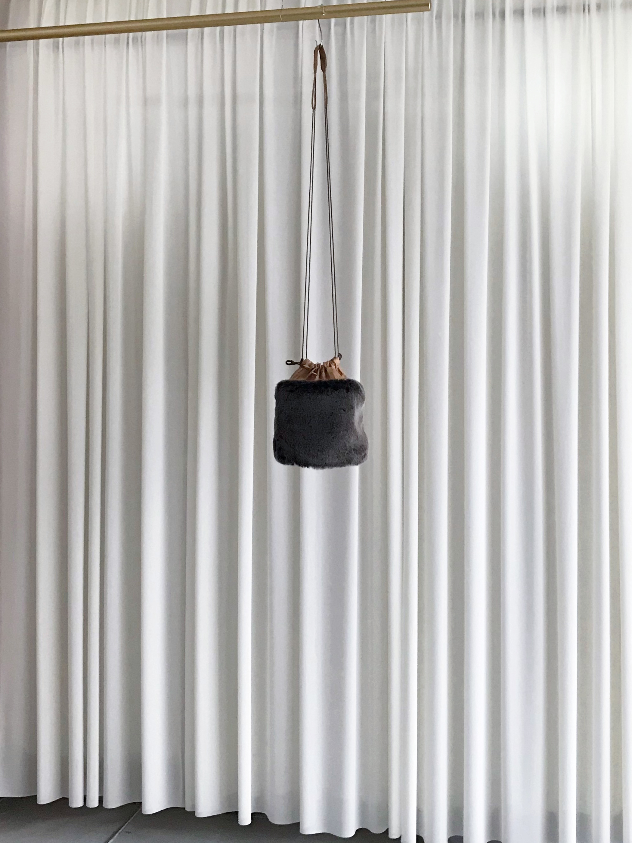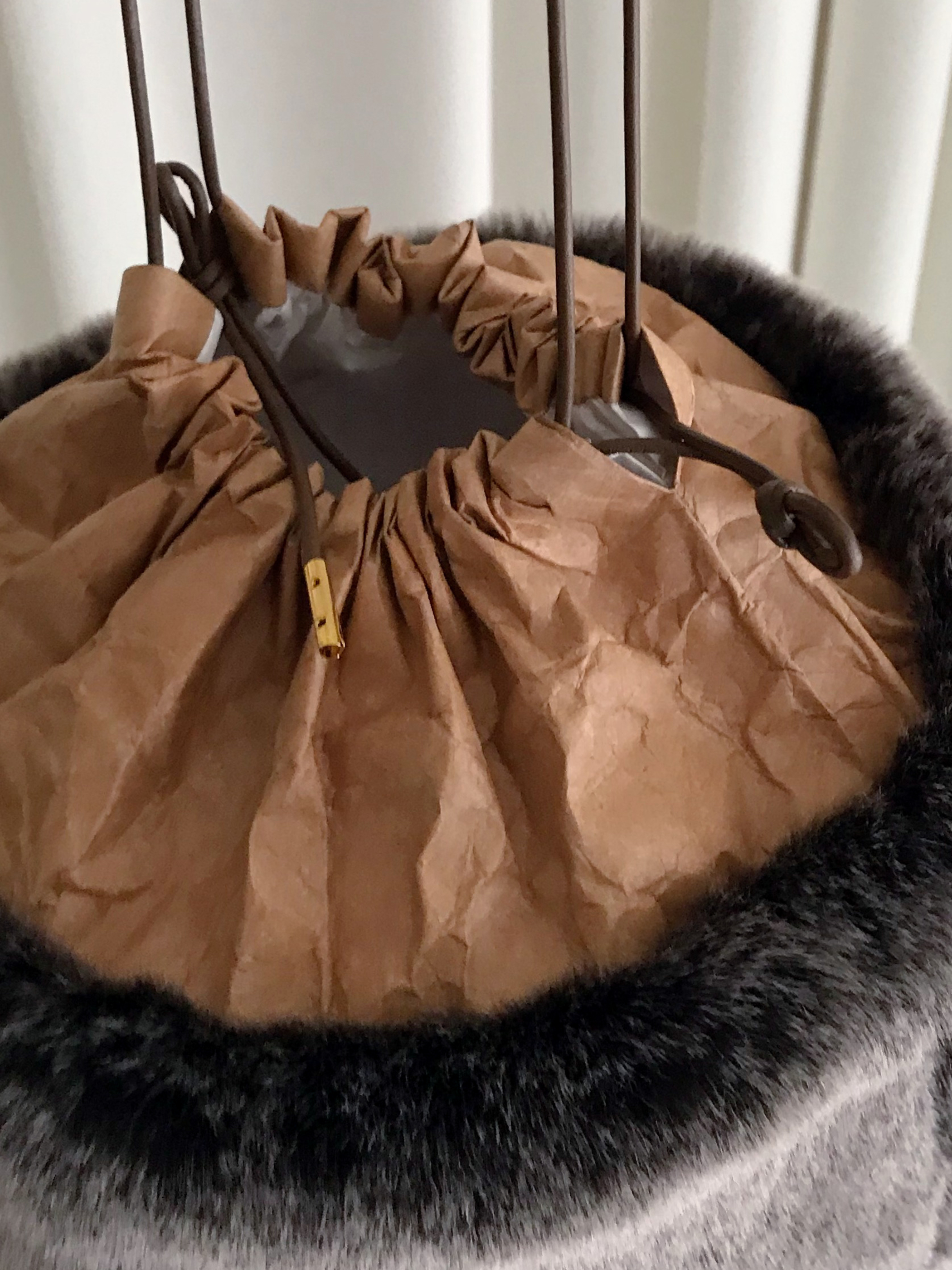 タイベックの巾着をフェイクファーで包む様なデザイン。