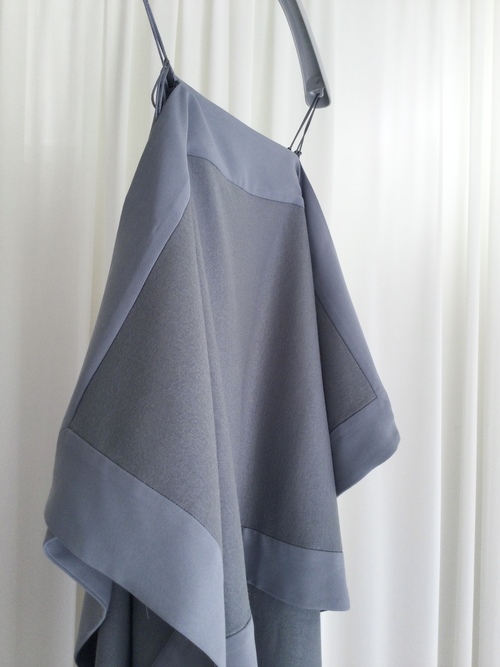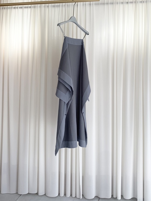 織物のジョーゼットとは違い編み地の為ほどよいストレッチ性があり、裏にはポリエステルの糸を回している為重ね着時の滑りも良く、綿100%には無いハリコシを併せ持ちます。