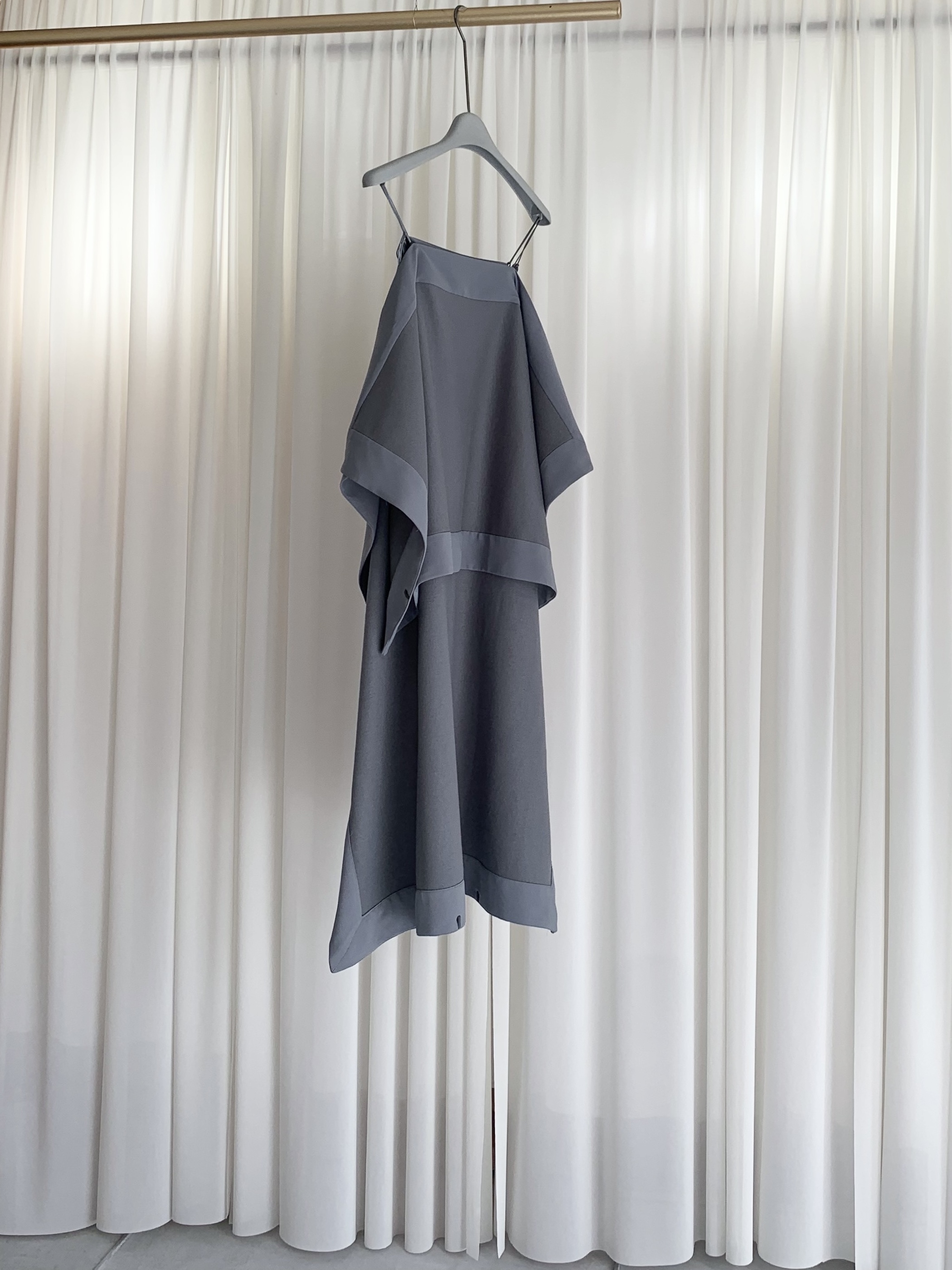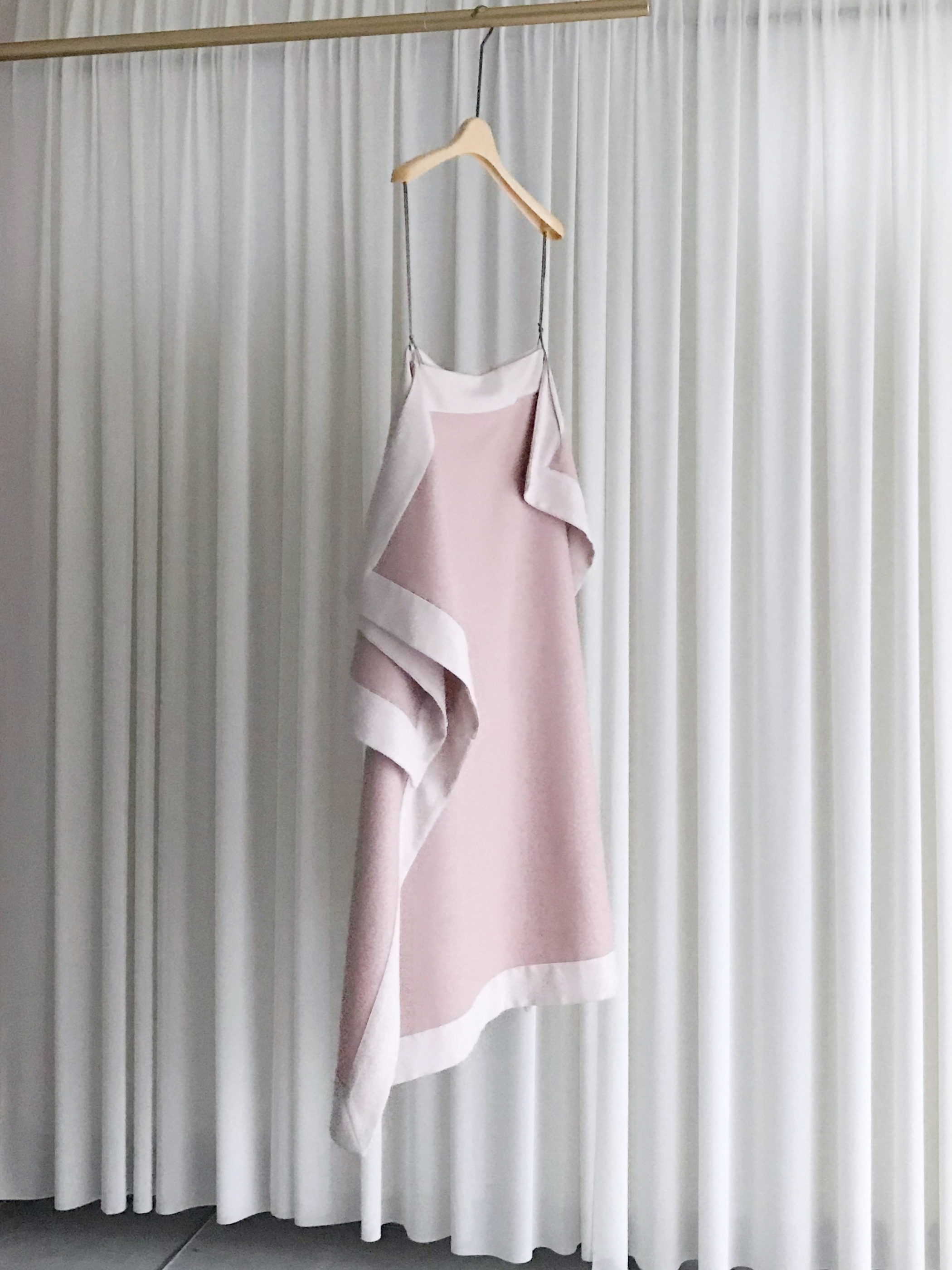 前後の大きさが違う四角形のパーツを2枚、紐で繋いでいるアイテムです。