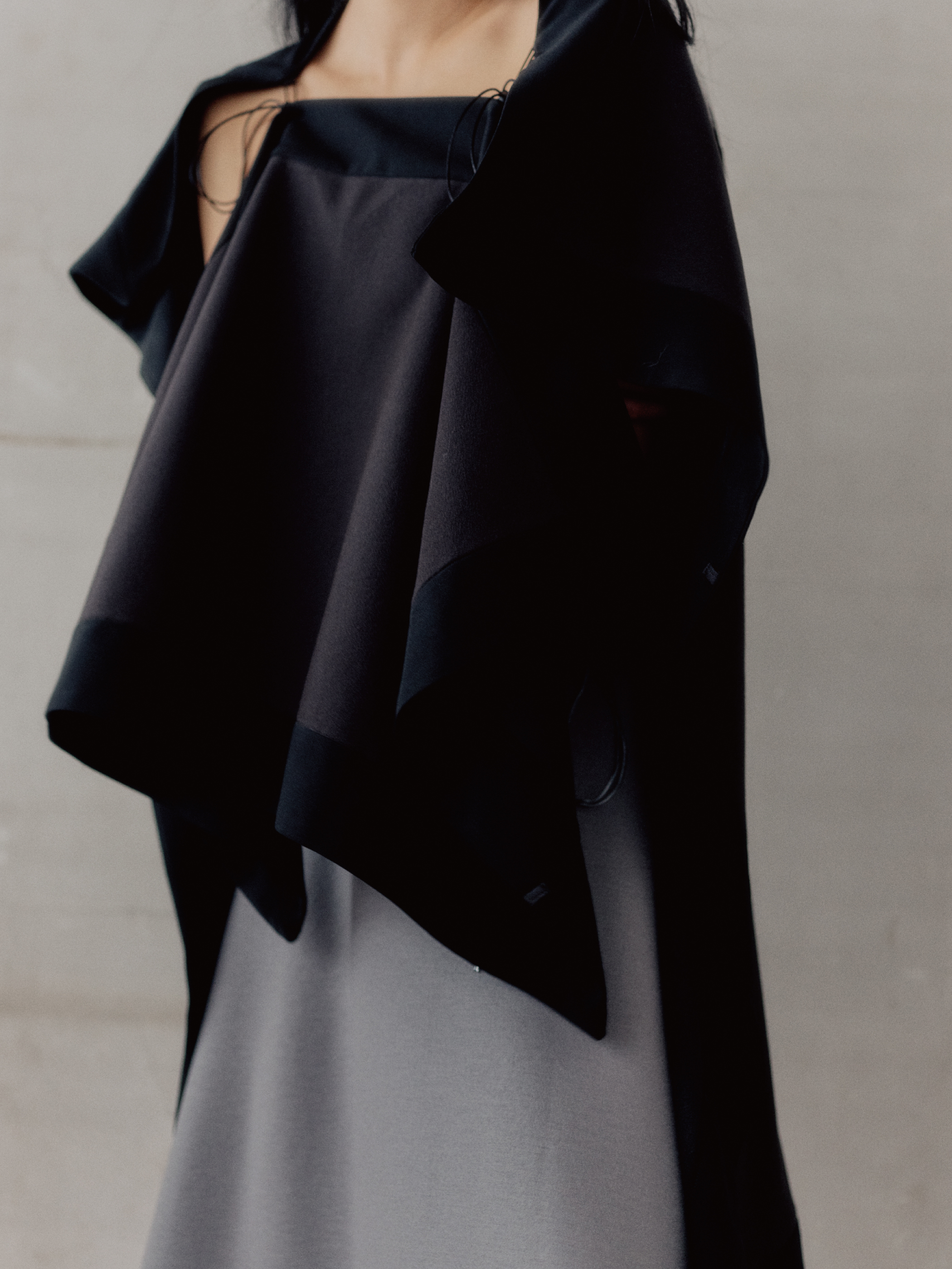 紐を通すループは計16箇所あり、ループと紐の組み合わせ次第で無数の着方が可能になります。