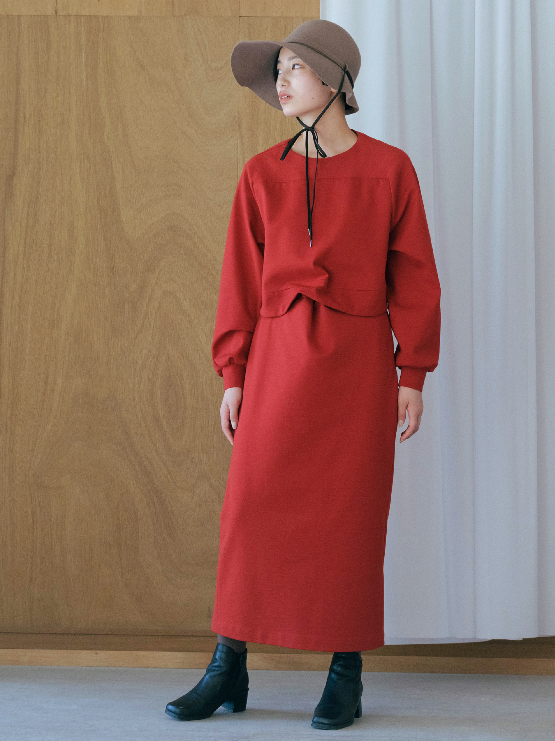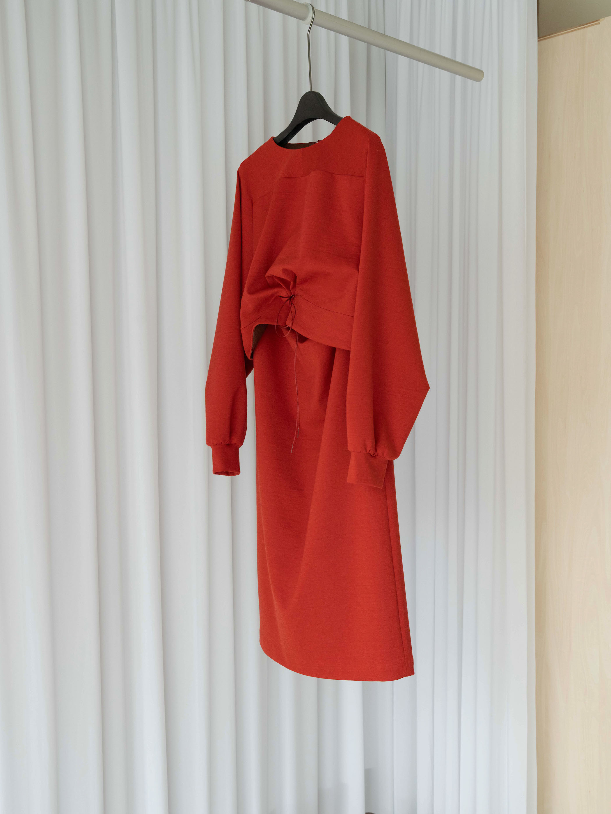 ドッキングドレスは、トップスとスカートのセットアップで、互いを紐でドッキングしても着用可能。