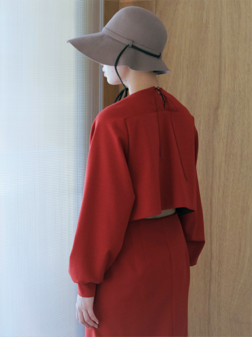 トップスは襟が着脱可能なクロップ丈や、前後で着用可能なワイドカラータイプ、スウェット調のデザインを取り入れた袖付きのタイプなどバリエーション豊か。ドッキングシリーズはトップス+ボトムのセットアップの他に、双方を編み込みドッキングした状態でも着用が可能。