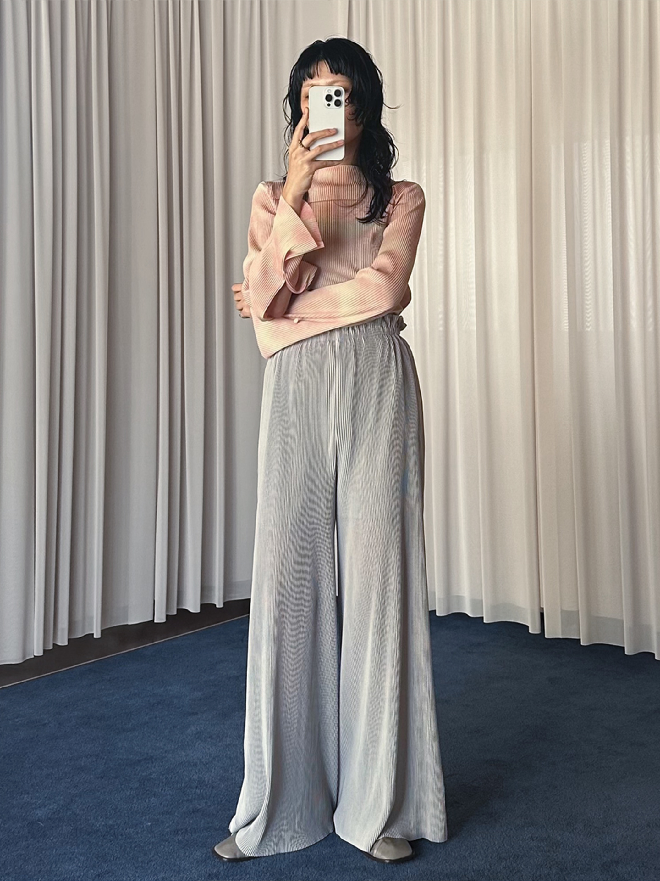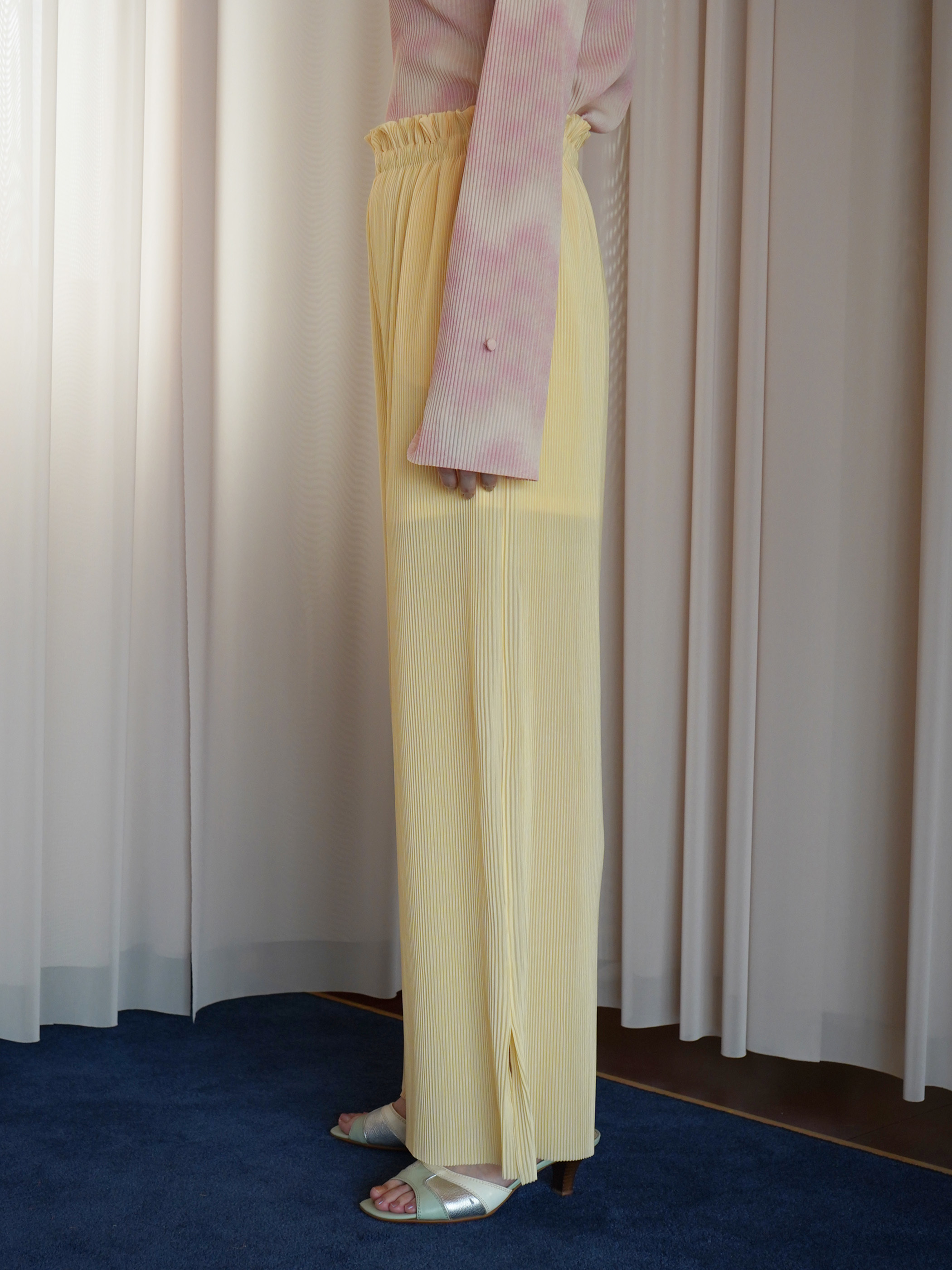 夏場から着用できる、しっとり滑らかな質感が特徴的なシーズンレスのプリーツシリーズ。