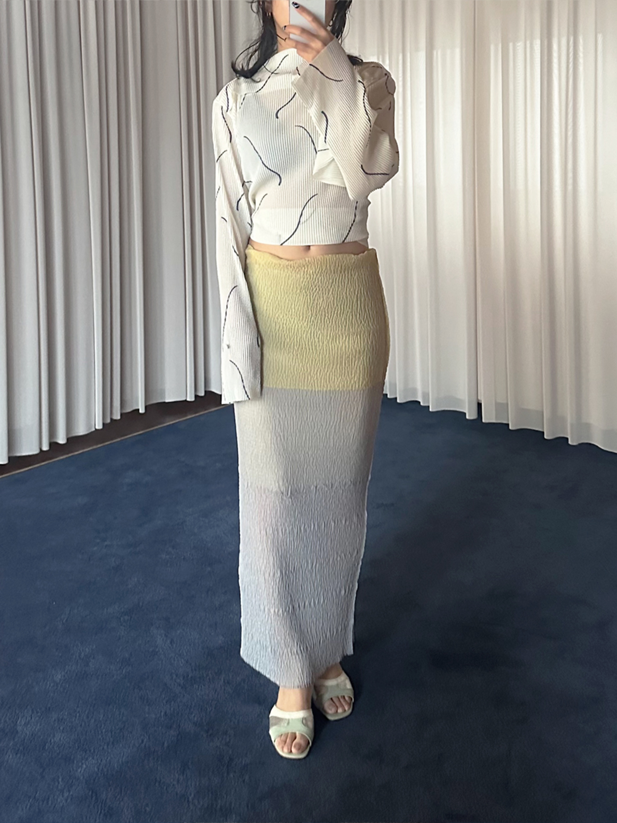 イェンスが軸としている生地プリーツではなく、製品プリーツの手法を取り入れた新たなシリーズで、非常に手の込んだ工程を経て作られている。ミセス系ではポピュラーだった加工法を現代的に置き換えたもの。